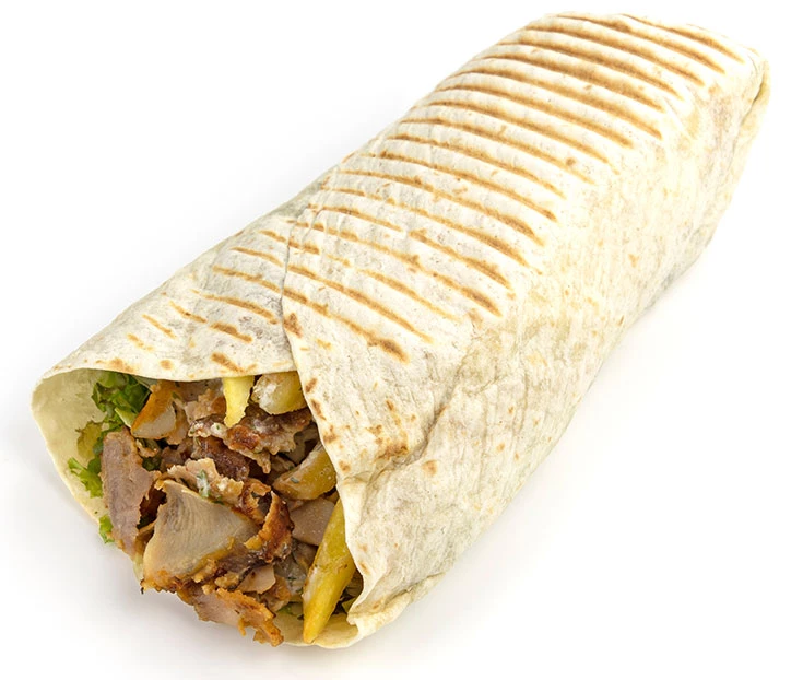 - Son emballage : une galette fine et souple au lieu d'un pain pita épais.